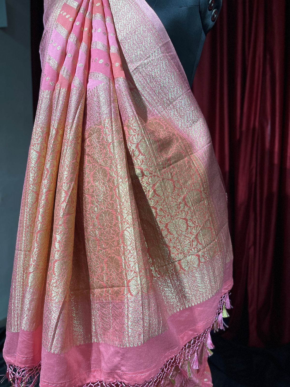 pure crape silk khaddi weaving saree in pink colour with broked blouse