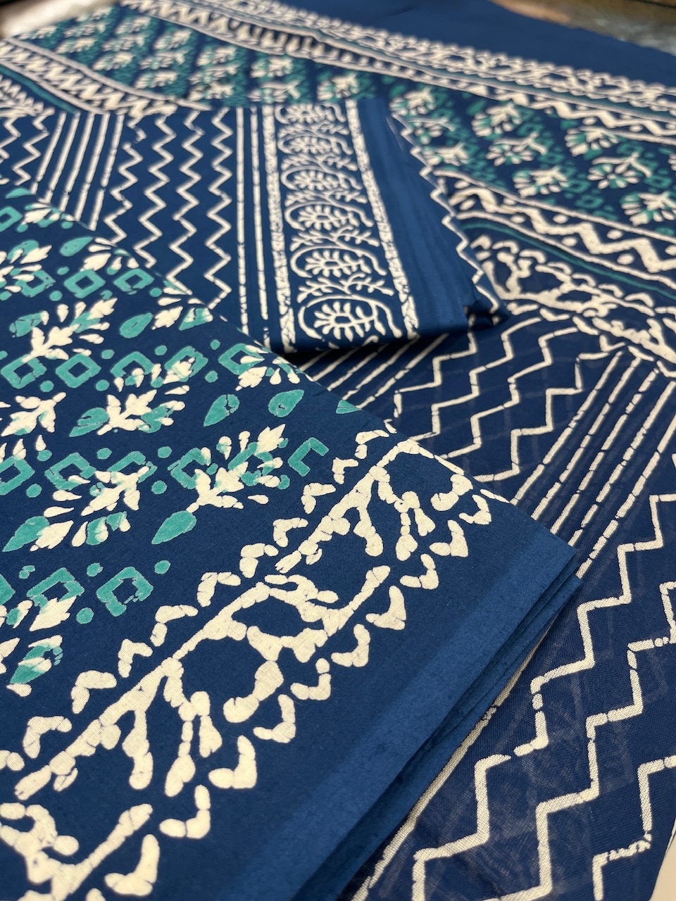 "Timeless artistry meets comfort in this pure cotton Bagru print dress material. With captivating floral and geometric patterns in serene blue and white, each detail speaks of traditional craftsmanship and elegance. Perfect for creating versatile, everyday attire that showcases your unique style with a touch of heritage."