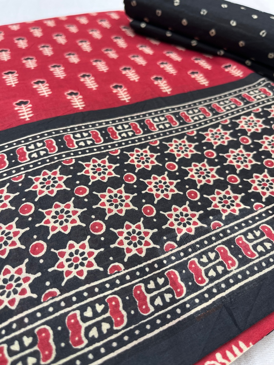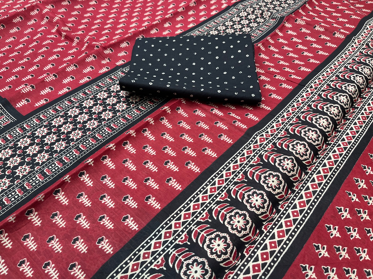 Pure cotton printed saree - red