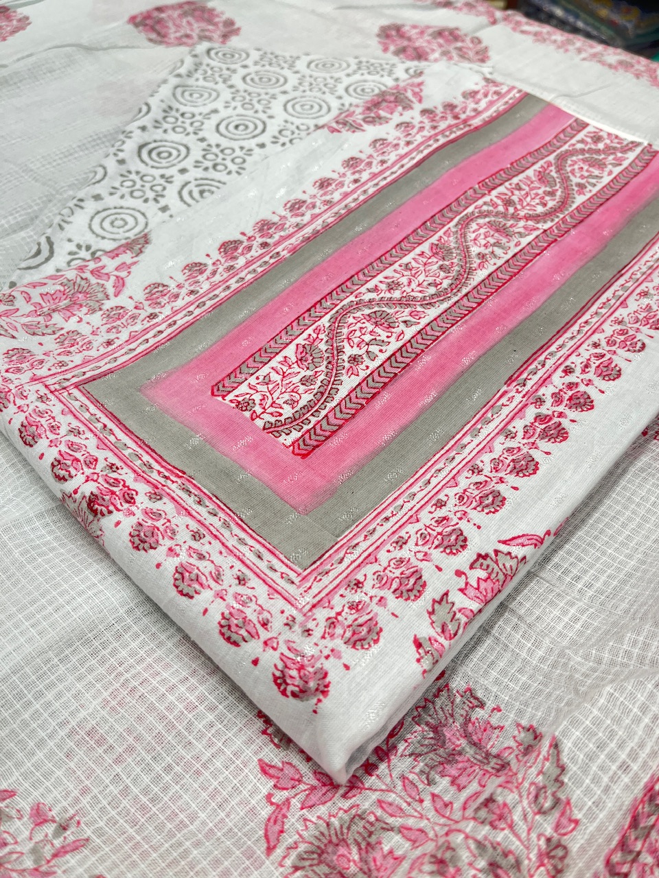 "Celebrate the art of heritage with this pure cotton dress material, featuring timeless Ajrakh block prints in soft, earthy tones. The fusion of intricate patterns and natural comfort makes it a versatile choice for creating elegant outfits with a touch of cultural sophistication."