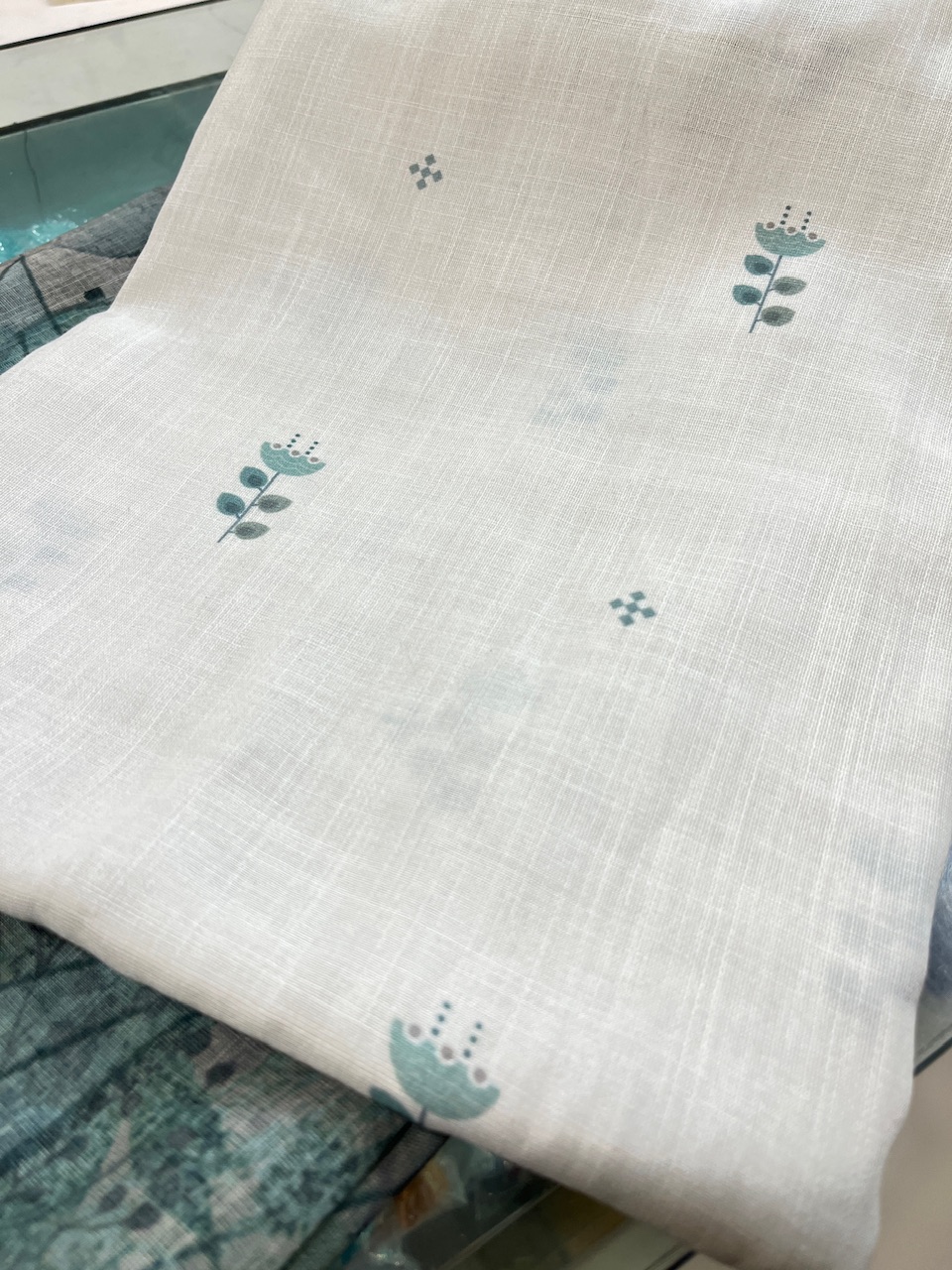 "Exude effortless elegance with this stunning white dress material, enriched with intricate teal floral embroidery that adds a touch of sophistication. Complemented by a matching teal fabric, this set is ideal for crafting an ensemble that blends timeless charm with modern finesse."